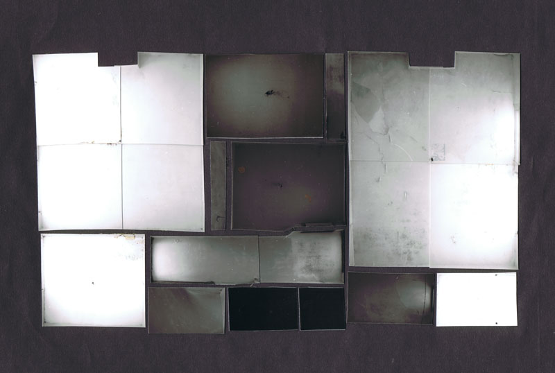 De werken zijn in de periode 1988 - 1990 ontstaan. Ze bestaan voornamelijk uit geknipte contactprints die de basis vormden voor grotere collages. Het zijn studies naar ruimtelijke beleving, pogingen om ruimtelijke situaties in kaart te brengen, reconstructies van plattegronden, straten, huizenblokken en plafonds. Combinaties van standpunten waarbij de perspectivische vertekening een rol speelt in het uiteindelijke beeld.Door alle plafonds van een huis te fotograferen met eenzelfde diafragma en met eenzelfde sluitertijd, en door de afzonderlijke foto’s samen te voegen ontstond de spiegelbeeldige plattegrond van het huis. Perspectivische vertekening werd uitgesloten door alleen het vlak van de plafonds te gebruiken. Aan de lichtval door ramen en deuren is op de plafonds af te lezen hoe afzonderlijke ruimtes onderling met elkaar en met buiten zijn verbonden. Op deze wijze wordt de lichtstructuur van het huis blootgelegd. Niet toegankelijke delen worden door andere ruimtes omsloten en op die manier gemarkeerd. Scheuren in het plafond en details als vingerafdrukken in piepschuimtegels, schroeven en spijkers voorzien de witte vlakken van tekens van leven.