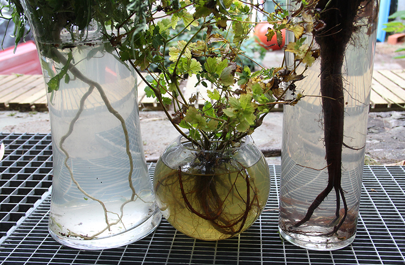 Na enkele weken bleken de verschillende planten(wortels) het water waar ze in stonden een andere kleuring te geven.